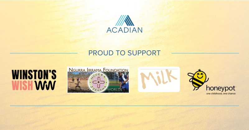 In celebration of the UN’s International Day of Charity on September 5, we are taking time this week to spotlight some of the wonderful organizations Acadian supports around the globe. In the UK, our team works with Winston's Wish and The Honeypot Children's Charity, who provide children in crisis with a range of mental and physical health programs and services. Our Sydney-based team are longtime supporters of the Ngurra Jirrama Foundation, whose mission is to address the striking lack of educational opportunities available to young Indigenous Australians from remote areas of the country. In Singapore, our local office has worked with MILK (Mainly I Love Kids) for a number of years, supporting the important work they do to plug the gaps in social services programs and lift families out of poverty.