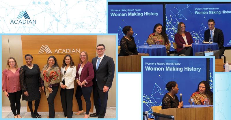 This week, we concluded our Women' s History Month celebration with a panel discussion sponsored by Acadian Women’s Forum. We were delighted to welcome Marcelia Freeman and Isis Ortiz-Belton to our Boston office for a Women Making History panel, joining Acadian’s Tara Norton, SVP and Director of Alternative Asset & Treasury Operations, to discuss their careers, how they have tackled various challenges along the way, and what it means to be a champion for other women. We are grateful for their insights and inspiration and will be listening to learn more from women leaders like them.
